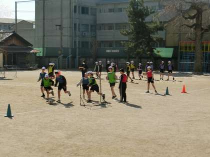 6年生は卒業式まで2週間を切りました。今日は1時間目に体育でサッカーのゲームをしていました。チームで楽しく活動することもあと少しです。小学校生活を満喫している様子でした。