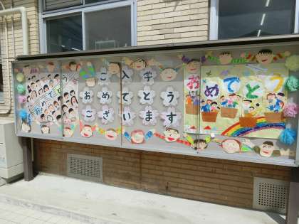 学校は入学式に向けて準備を始めました。チューリップはもうすぐ咲くかな?菜の花も大きくなってきました。掲示板は入学式仕様になりました。