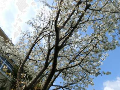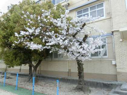土日の間に桜が勢いよく花を開いたようです。正門横の桜は葉桜になってきました。ふれあい広場の大きな桜は満開です。運動場の桜も満開に近いようです。始業式、入学式の頃には、花吹雪が見られるのではないでしょうか。