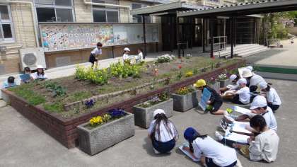 図画工作科の学習で,校庭の植物を描きました。いいお天気の中,お花見をしながらスケッチを楽しむことができました。参観日には教室後方に掲示しますので,ぜひご覧ください。