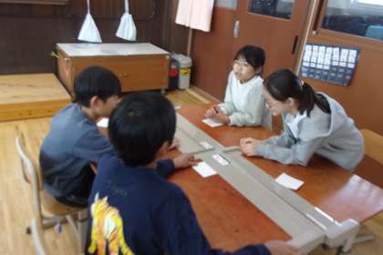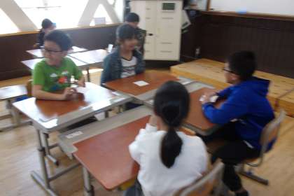 会話をしながら、自分の持っているカードに書かれた言葉を引き出す活動をしました。
