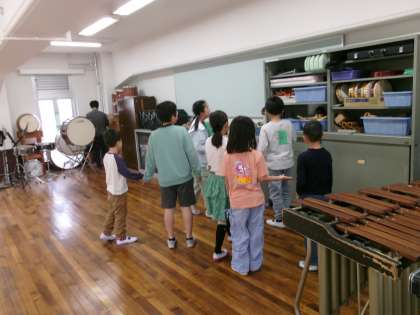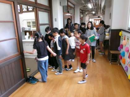 後半は、たてわりグループのお兄さんお姉さんたちが1年生を連れて校舎を案内しました。