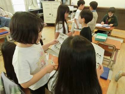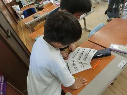 英語で、How are you? I’m happy. などのあいさつをするゲームをしていました。ビンゴゲームを取り入れることで、楽しみながら、たくさんの友だちとあいさつを交わすことができました。
