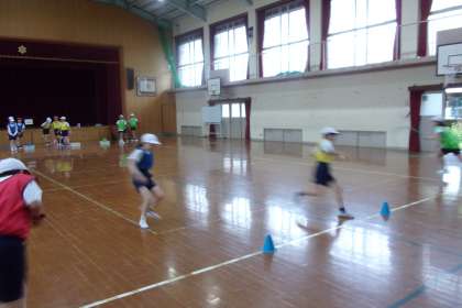 体育館でバトンパスの練習を中心に行いました。