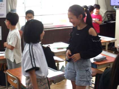 外国語の時間に、天気の言い方や、遊びに誘うときの言い方を学習しています。