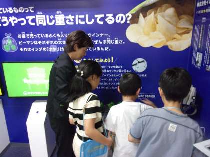 前半は、殿堂学習で京都の新しいモノづくりについて調べました。子どもたちは、自分の学習問題を解決するため、事前に決めておいた会社のブースを見て回りました。