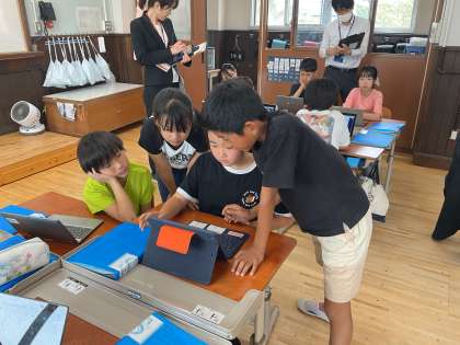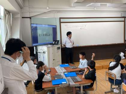 事後の研究協議会では、京都教育大学の大久保紀一朗先生にお越しいただき、子どもたちの情報活用能力育成、探究的な学習活動、子ども主体の学習活動などの視点から、ご指導をいただきました。