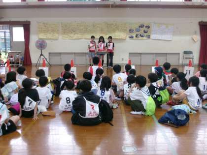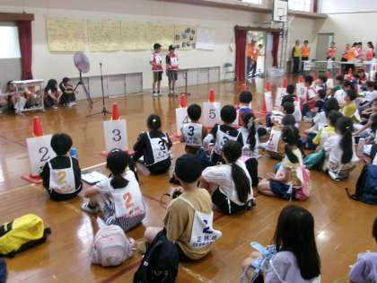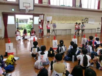 正親一日防災デーの後半には、ミッションXが行われました。90名を超える子どもたちが参加してくれました。また、今年度からは、5年生が主体となり、総合的な学習の時間の取組として準備をしてきました。開会式・閉会式はもちろん、クイズやその答え合わせにも挑戦しました。