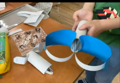 画用紙を組み合わせて作る簡単な仕組みから、そうぞうをひろげて作りました。