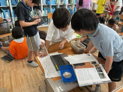 今日は,毎日のお世話で発見したことを,写真や動画で撮ったり,図鑑で調べて確かめたりしました。ロイロノートにカードを集めてつなぎ,紹介の準備を進めています。