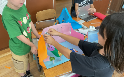 最後に実際に動かして,友達と鑑賞会をしました。それぞれの工夫がきらりと光る作品がたくさんできました。