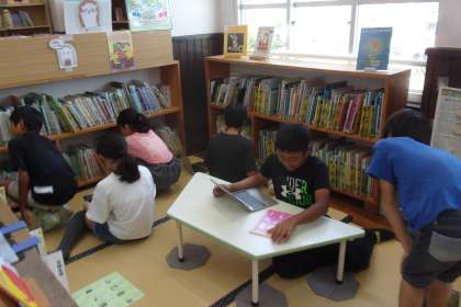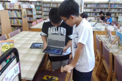 国語科では学校図書館に行き、「作家」をテーマに読書を広げています。