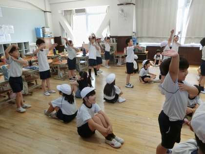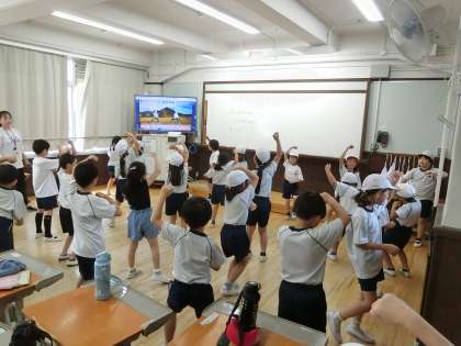 運動会で行う全校ダンスの練習をしていました。とても楽しそうに踊っていました。