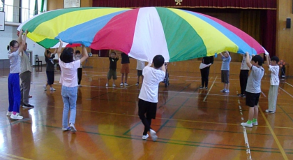 今日は、合同運動会の練習のため、二条城北小学校に行ってきました。乾隆小学校のお友だちも一緒です。3校で自己紹介をしたり、運動会のダンスをおどったり、バルーンの練習をしたりしました。大人数で膨らませると、飛んでいきそうなくらいすごいパワーでバルーンが膨らむことがわかりました。久しぶりの交流会でみんな楽しそうでした。