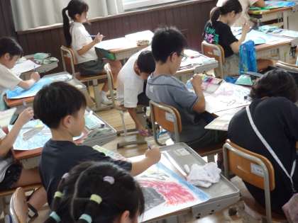 今日は、前回の学習で色をつけた上から、重ね塗りや線描きをして、仕上げました。