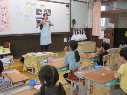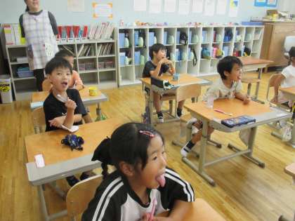 歯科衛士の方から、正しい歯磨きの仕方を教えていただきました。虫歯になってしまうと、痛くて大変です。ご飯も美味しく食べられなくなってしまいます。毎朝・毎晩、優しく隅々まで歯磨きをして、虫歯菌から歯を守りましょう。また、お口の周りの筋肉を動かす「あいうべ体操」も教えてもらいました。お口の健康を保って、毎日気持ちよく過ごしたいですね。
