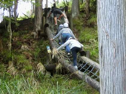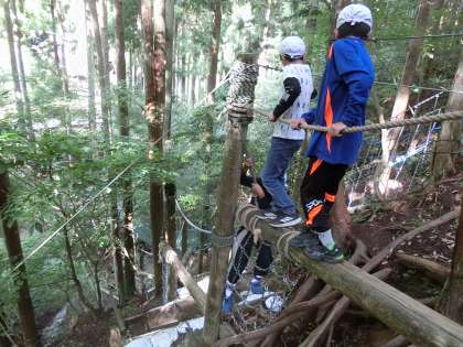 3日目の午前中は、冒険の森のアスレチックを体験しました。自然の山の中をワクワクしながらアスレティックに挑戦しました。
