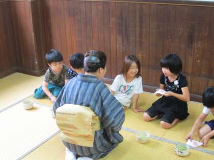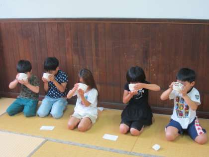 その後,お茶をいただきました。「おいしい」「にが〜い」といった声が聞こえてきました。