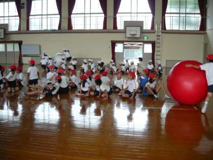 たてわりグループごとに「大玉送り」「玉入れ」「綱引き」の三種目のうち一つにエントリーしました。その種目ごとに練習をしました。