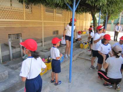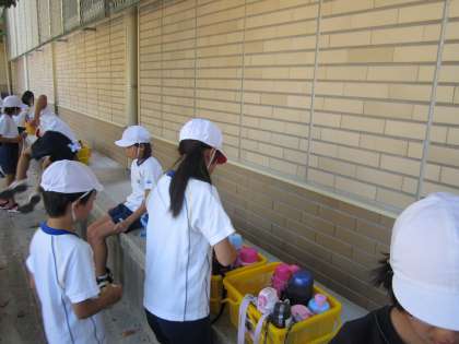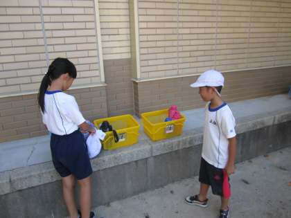 その前に水分補給のための水筒もグループごとのかごに入れました。