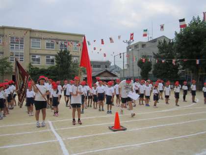 開会式では,たてわりグループのリーダーを先頭に入場しました。