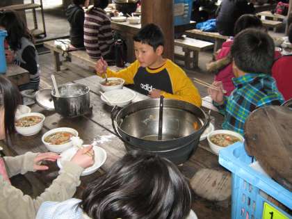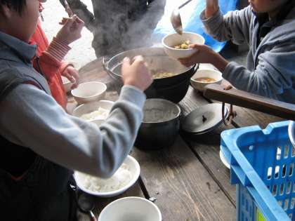 出来上がるのに時間の差ができましたが、どのグループもすきやき風煮込みはおいしく出来上がりました。ご飯の水の量に失敗したグループもありましたが、次に生かせる失敗だと思います。