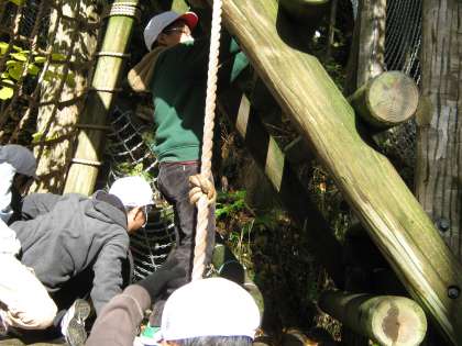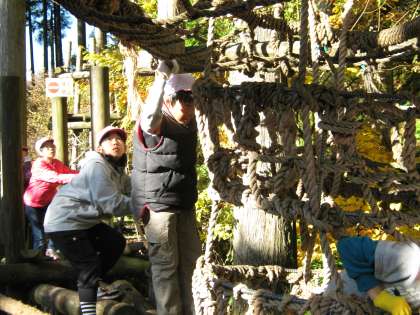 予定していた時間よりも早く終わったので、午前中できなかった「冒険の森」での活動をしました。