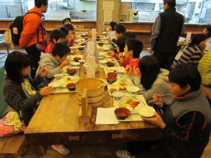 山の家最後の夕食です。中華風バイキングをしっかりと食べました。今夜のキャンプファイヤーに向けて,元気いっぱいです。