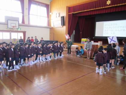初めに,全体で○×クイズをしました。