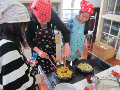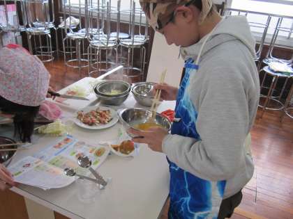 作ってもらうのと,作るのでは大違い。30分間という調理時間の目標には届かなかったけど,一生懸命に作りました。