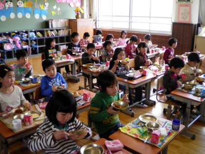 おいしかったよ,初めての給食は!