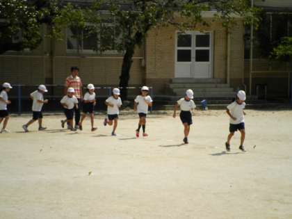 9月11日 運動会まであと2週間です。各学年の練習も力が入ってきています。体育館では,5・6年生の組体操の音楽が流れ出しました。運動場では,3・4年生の団体競技「2013竹取物語」の練習をしていました。