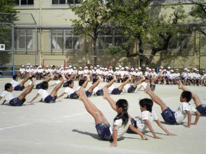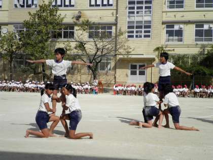 9月28日 そして最後は,5・6年生の組体操。波打つ海の中をタワー進むという迫力ある組体操でした。子ども達のまぶしいくらいの勇士は見ているものに感動を与えていました。ありがとう,素晴らしい演技を!