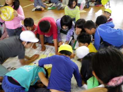 10月16日 約一時間,校区を回り,危険個所や交差点をチェックしました。校区を回ってきたグループは,地図に気付いたことを書き込みました。校長先生から,パトロールの様子と今後の登下校,休日の安全について話がありました。最後に,お世話になった方々にお礼を言いました。