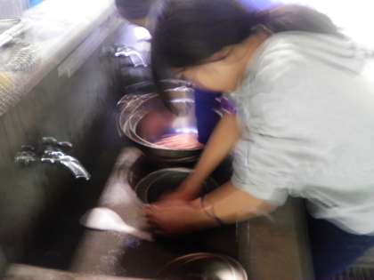 おいしい昼食の後は,しっかり洗って来た時より美しく!