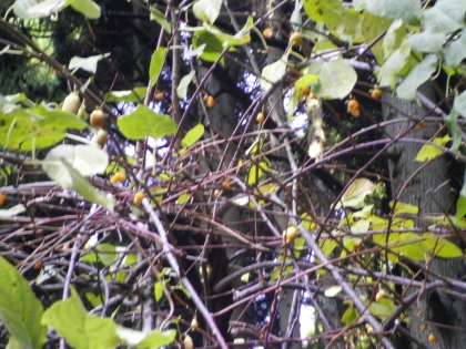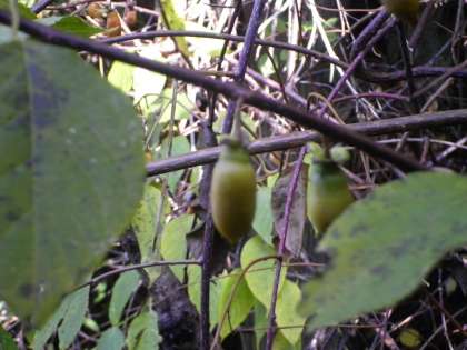 11月4日 炊事場でみんながおいしい昼食を作っている時に一人の子どもがつるにぶら下がっている実を発見!なんと,その実は「マタタビ」でした!猫が好む実です。ちょっとなめてみると,甘い実でした。切ってみるとキュウイそのものでした。