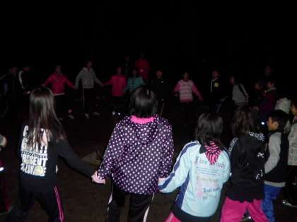 11月4日 楽しいキャンプファイヤーもあっという間に過ぎました。楽しい笑い声が山の家にこだましていました。司会進行の子ども達,ご苦労様。火の神,火の子御苦労さまでした!
