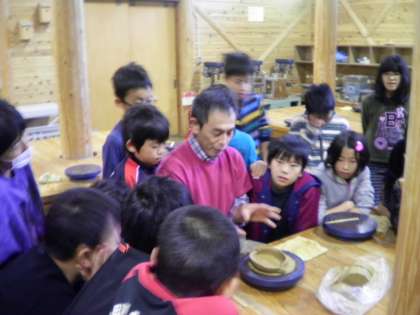 11月5日 第5日目の活動は,思い出作品づくりにチャレンジです。花背焼きを山の家の先生に教えていただきました。みんな,粘土をこねながら個性あふれる作品を造っていました。