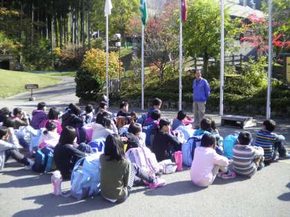 11月5日 楽しかった山の家野外活動も最後のプログラムとなりました。児童代表のあいさつの後,山の家の先生,校長先生の話がありました。山の家の先生は,「この山の家での経験を大切にし,学んだことを学校生活にも生かしてください。」と言われました。校長先生は,「この4泊5日でみなさんは大きく成長しました。これからの学校生活が楽しみです。」と言ってくださいました。頑張りましょう,5年生のみんな。そして,みんなを乗せたバスは,一路学校へと出発しました。