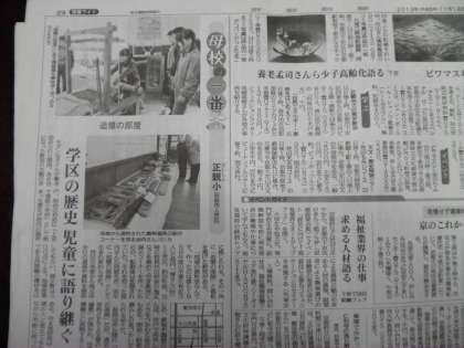 11月13日 今日の朝刊(京都新聞)に本校の「追憶の部屋」が紹介されました。先日京都新聞の記者が来られ,取材されました。6年生の子ども達も今,総合的な学習で平安京を調べています。その中で,この「追憶の部屋」を資料として学習を進めています。京都新聞で11月から始まった『母校の一番』に載って,さらにこの「追憶の部屋』の貴重なことが分かりました。