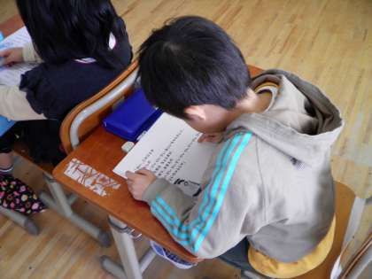 11月14日 後期前半に入り,1ヶ月が過ぎました。1年生も大きな行事の運動会を経験した後,一気にたくましく成長しました。教室をのぞくと,テストをしたり本読みをしていました。今,学校は正親の文化の集いの練習をどの学年も取り組んでいます。1年生は,今日も体育館で劇の練習を頑張っていました。当日が楽しみです。「早くおおきくなあれ,一年生!」