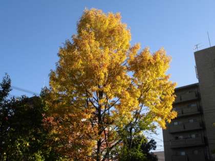 11月19日 京都市内のあちこちで紅葉シーズン到来という声が聞こえています。本校の樹木にも紅葉が始まっています。団栗(どんぐり)の木は,黄色があざやかになっています。銀杏は,徐々に黄色くなっています。花梨(かりん)の実は,綺麗な黄色に色付きました。子ども達からも「きれい!」という声があがっています。