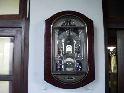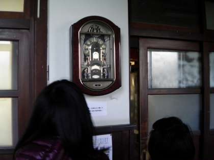 11月22日 からくり時計が子ども達を楽しませてくれています。校長室の前の廊下に今週からからくり時計が設置されました。黒いボタンを押すと幾種類かのメロディーが流れます。休み時間になると,子ども達がメロディーを聴きにやってきます。「綺麗な曲!」「安らぐなあ〜」「心が和むなあ〜」と言いながら聴いています。学校へ来られたら聴いてみてください。