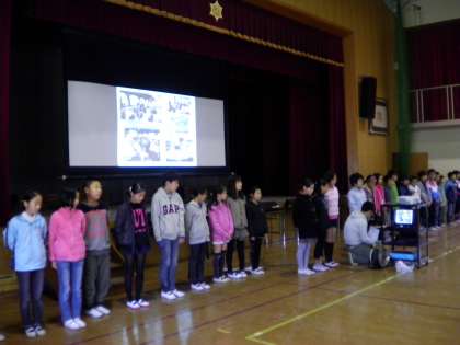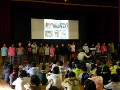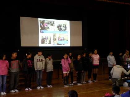 11月22日 今日の正親タイムは,先日11月1日〜5日まで花背山の家で行われた5年生の長期宿泊体験学習の感動体験の発表でした。一人一人がその5日間の様子をプレゼンテーションで紹介しながら報告してくれました。楽しい思い出ばかりで,低学年の子ども達の中なら「いいなあ,5年生は!」「私も早くいきたいなあ」という声があがっていました。5年生は,この長期宿泊学習で多くの事を学んだようです。発表も素晴らしかったです。