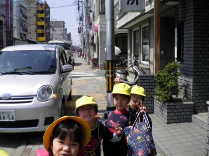 4月9日 今日は,一年生の最初の集団下校です。担任・校長・教務主任等の先生が5グループに分かれて下校しました。10日までは,11時30分の下校です。
