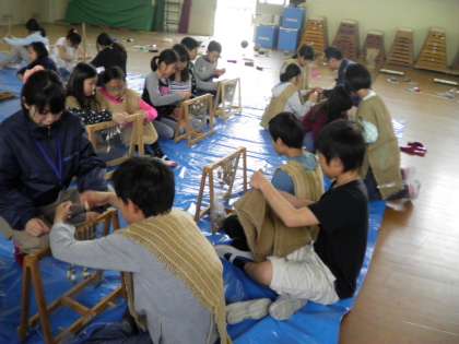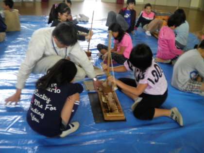 5月1日 今日の2,3校時に6年生が体育館で社会科の学習をしました。京都市埋蔵文化研究所の方に来ていただき,土器の紹介や火おこし,機織りなど体験しました。火おこしでは,火おこしの道具を巧みに使ってうまく火種をつくっていました。大昔の生活を少し味わったようでした。