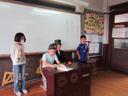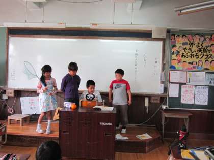 4つの場面に分け,グループで音読劇をするところを決めました。