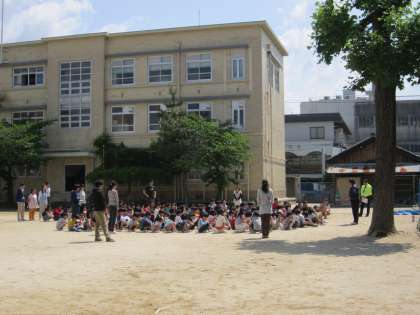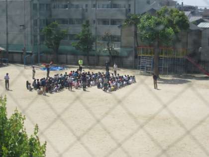 5月13日 今日の2校時に「火災」を想定した避難訓練がありました。午前10時,職員室より緊急放送があり,避難が始まりました。子ども達は静か各避難経路から運動場へ避難しました。いつ・どこで・どんな場面で避難しなければならないことが起こるかわかりません。危機感をもって,真剣に取り組んでいきまししよう。