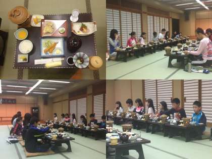 京都から遠く離れた土地での活動も終わり,おいしい夕食をいただいて2日目のパワーを充電です。