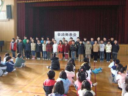 2年の音読発表会です。